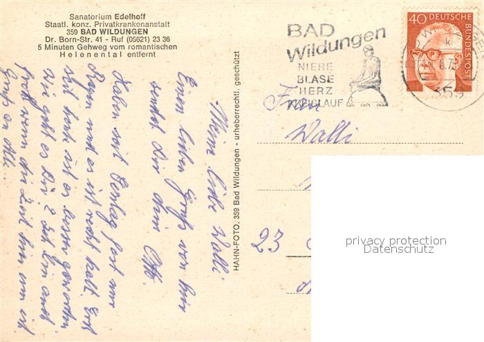 72964713 alte Postkarte Bad Wildungen Sanatorium Edelhoff Landschaftspanorama postalisch gelaufen Erhaltung siehe scans [FriedD77] KatCode: 11110006635003