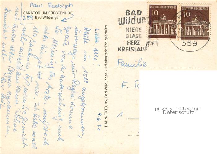 73689668 alte Postkarte Bad Wildungen Sanatorium Fuerstenhof postalisch gelaufen Erhaltung siehe scans [WerneD78] KatCode: 11110006635003