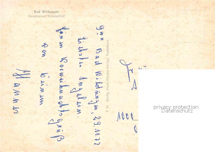 72798023 Bad Wildungen Sanatorium Fuerstenhof postalisch nicht gelaufen Erhaltung siehe scans [KathaD81] KatCode: 11110006635003