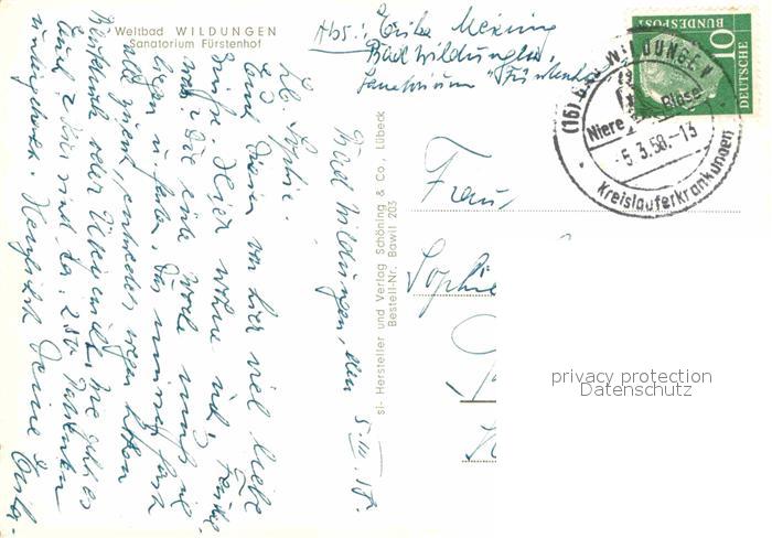72796383 alte Postkarte Bad Wildungen Sanatorium Fuerstenhof postalisch gelaufen Erhaltung siehe scans [LiesaD40] KatCode: 11110006635003