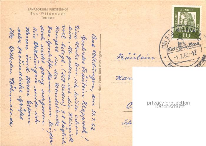 72960068 alte Postkarte Bad Wildungen Sanatorium Fuerstenhof Terrasse postalisch gelaufen Erhaltung siehe scans [WerneD78] KatCode: 11110006635003