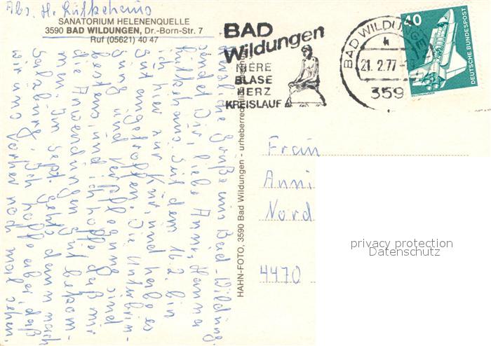 73649523 alte Postkarte Bad Wildungen Sanatorium Helenenquelle postalisch gelaufen Erhaltung siehe scans [WerneD78] KatCode: 11110006635003