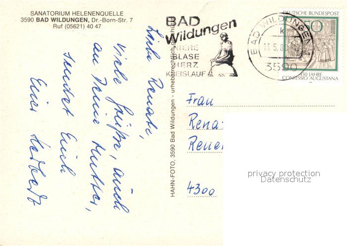 73067135 alte Postkarte Bad Wildungen Sanatorium Helenenquelle postalisch gelaufen Erhaltung siehe scans [NatalD47] KatCode: 11110006635003