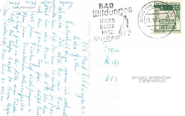 72776364 alte Postkarte Bad Wildungen Sanatorium Helenenquelle postalisch gelaufen Erhaltung siehe scans [NatalD47] KatCode: 11110006635003