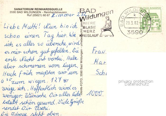 73107292 alte Postkarte Bad Wildungen Sanatorium Reinhardsquelle postalisch gelaufen Erhaltung siehe scans [NatalD47] KatCode: 11110006635003