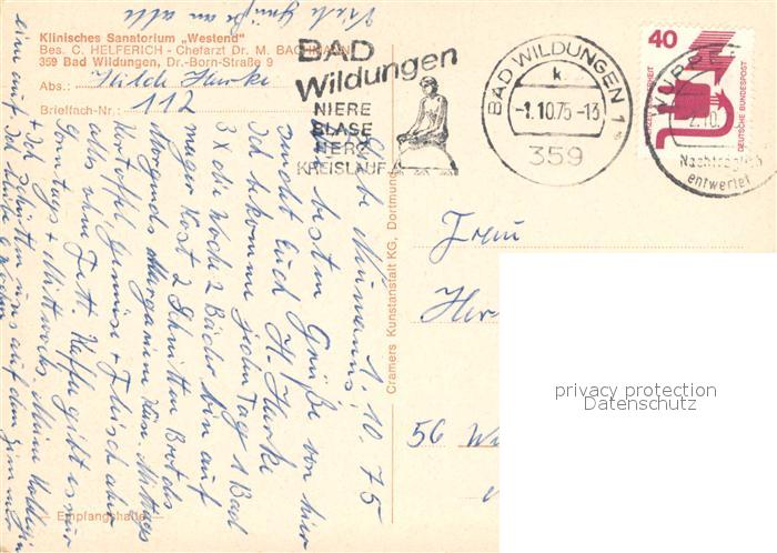 73680031 alte Postkarte Bad Wildungen Sanatorium Westend postalisch gelaufen Erhaltung siehe scans [LiesaD40] KatCode: 11110006635003