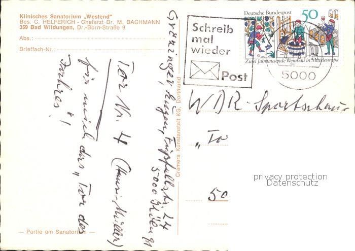 72066110 alte Postkarte Bad Wildungen Sanatorium Westend postalisch gelaufen Erhaltung siehe scans KatCode: 11110006635003
