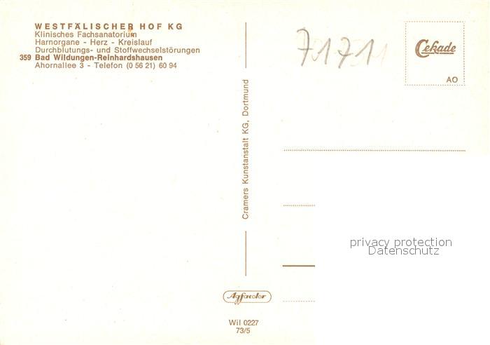 73118921 Bad Wildungen Sanatorium Westfaelischer Hof Reinhardshausen postalisch nicht gelaufen Erhaltung siehe scans [LiesaD40] KatCode: 11110006635003