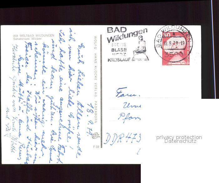72011903 alte Postkarte Bad Wildungen Sanatorium Wicker postalisch gelaufen Erhaltung siehe scans KatCode: 11110006635003