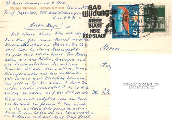 73780375 alte Postkarte Bad Wildungen Sanatorium Wicker postalisch gelaufen Erhaltung siehe scans [WerneD78] KatCode: 11110006635003