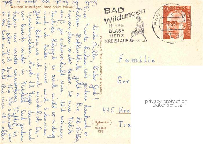 72835071 alte Postkarte Bad Wildungen Sanatorium Wicker Fontaene Wasserspiele postalisch gelaufen Erhaltung siehe scans [FriedD77] KatCode: 11110006635003