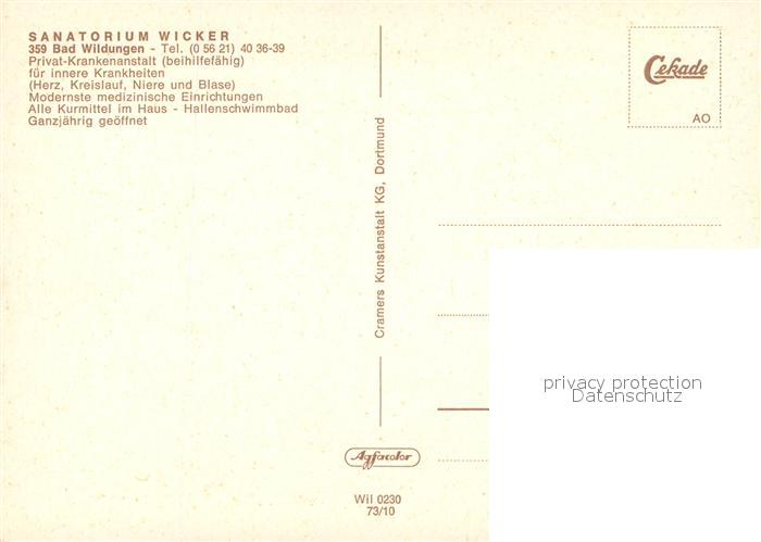73576321 Bad Wildungen Sanatorium Wicker Restaurant Hallenbad postalisch nicht gelaufen Erhaltung siehe scans [FriedD77] KatCode: 11110006635003