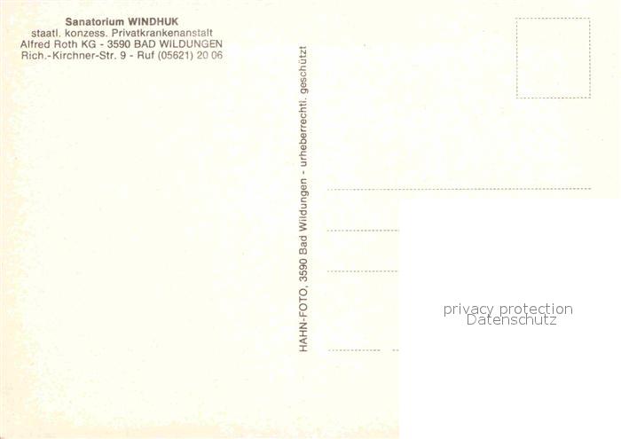 72630780 Bad Wildungen Sanatorium Windhuk postalisch nicht gelaufen Erhaltung siehe scans [LiesaD40] KatCode: 11110006635003