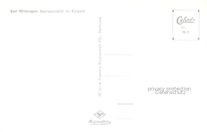73057160 Bad Wildungen Seerosenteich im Kurpark postalisch nicht gelaufen Erhaltung siehe scans [WerneD78] KatCode: 11110006635003