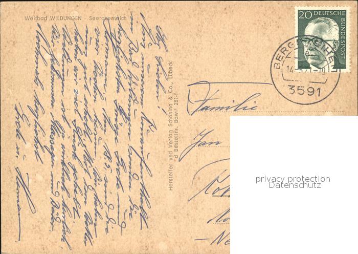 72469473 alte Postkarte Bad Wildungen Seerosenteich postalisch gelaufen Erhaltung siehe scans KatCode: 11110006635003