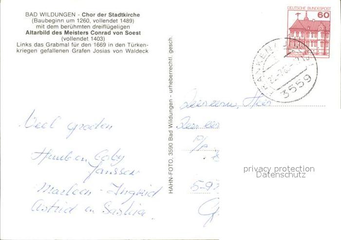 72410141 alte Postkarte Bad Wildungen Stadtkirche Chor postalisch gelaufen Erhaltung siehe scans KatCode: 11110006635003