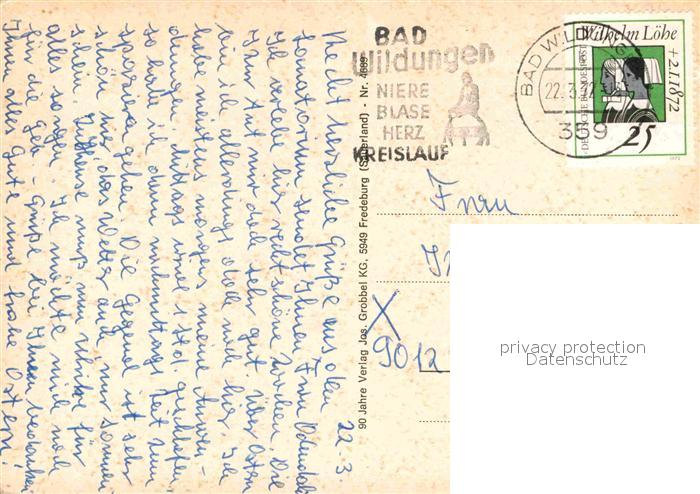 72616372 alte Postkarte Bad Wildungen Teilansicht Altstadt Schloss Friedrichstein Kurpark postalisch gelaufen Erhaltung siehe scans [FriedD77] KatCode: 11110006635003