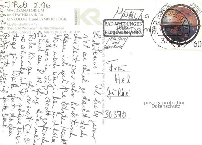 74043083 alte Postkarte BAD WILDUNGEN Waldsanatorium und Fachklinik fuer Onkologie Fliegeraufnahme postalisch gelaufen Erhaltung siehe scans [WerneD78] KatCode: 11110006635003