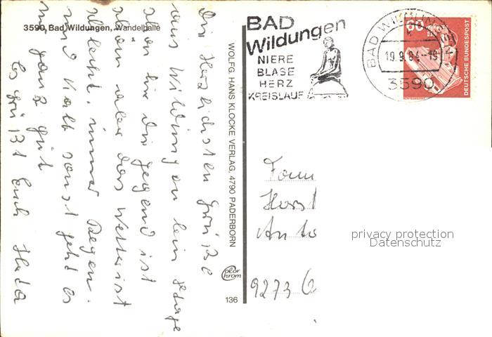 72447836 alte Postkarte Bad Wildungen Wandelhalle postalisch gelaufen Erhaltung siehe scans KatCode: 11110006635003