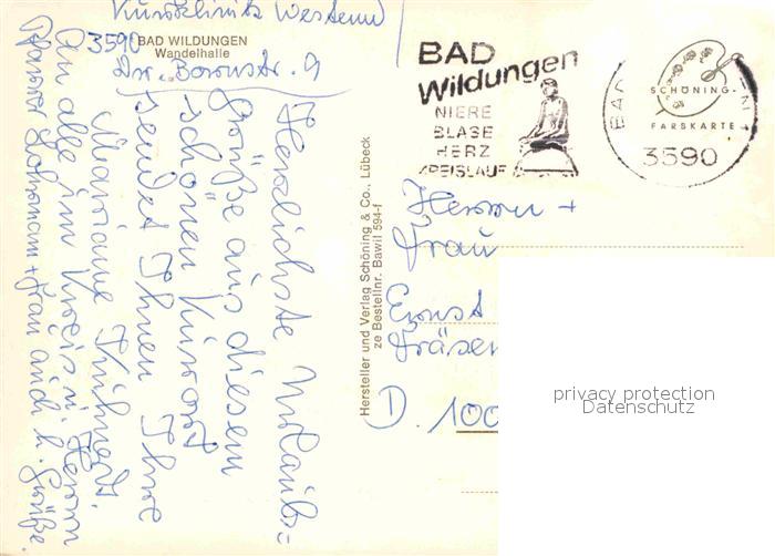 72919262 alte Postkarte Bad Wildungen Wandelhalle postalisch gelaufen Erhaltung siehe scans [NatalD47] KatCode: 11110006635003