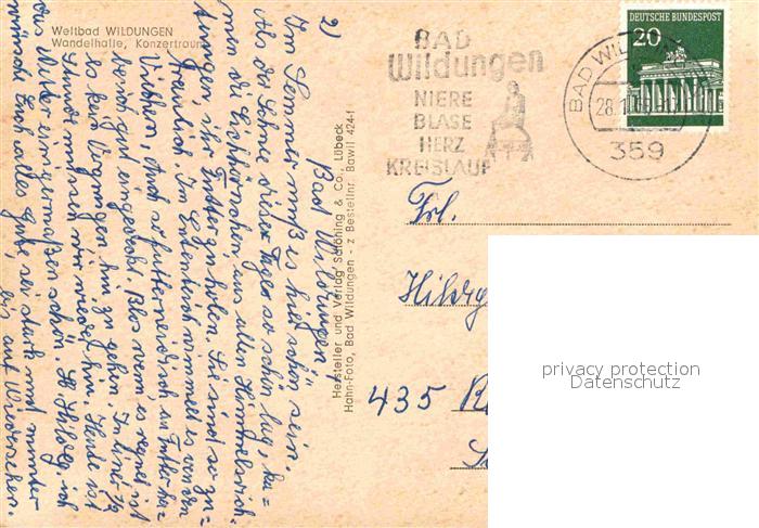 72785178 alte Postkarte Bad Wildungen Wandelhalle Konzertraum postalisch gelaufen Erhaltung siehe scans [FriedD77] KatCode: 11110006635003