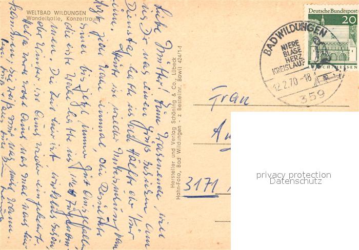 73101646 alte Postkarte Bad Wildungen Wandelhalle Konzertsaal postalisch gelaufen Erhaltung siehe scans [WerneD78] KatCode: 11110006635003