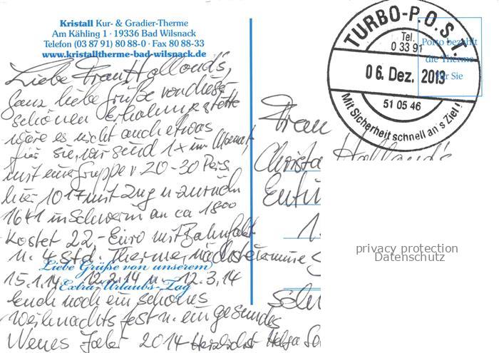 74023209 alte Postkarte Bad Wilsnack Brandenburg Kristall Kur- und Gradier-Therme Thermalbad postalisch gelaufen Erhaltung siehe scans [FriedD77] KatCode: 11110012070008