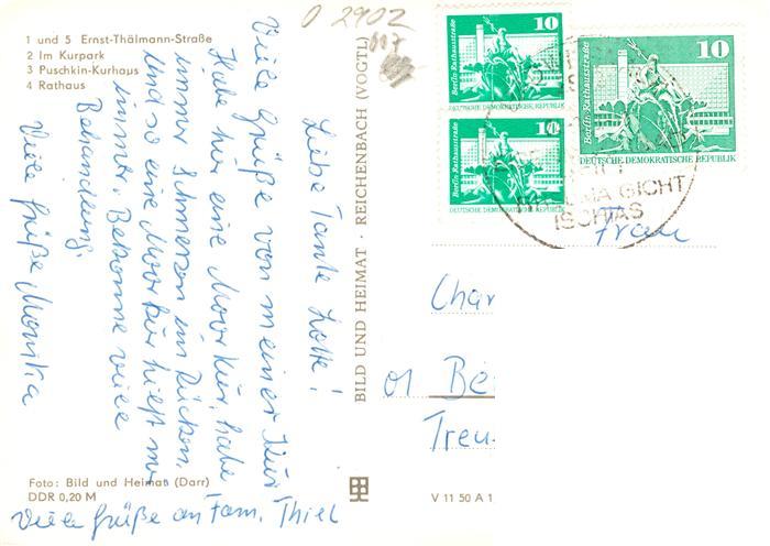 73907755 alte Postkarte Bad Wilsnack Ernst Thaelmann Strasse Im Kurpark Puschkin Kurhaus Rathaus postalisch gelaufen Erhaltung siehe scans [FriedD77] KatCode: 11110012070008
