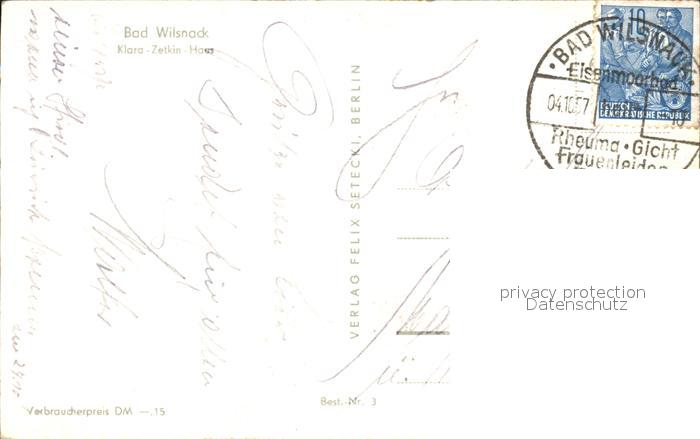 72436563 alte Postkarte Bad Wilsnack Klara Zetkin Haus postalisch gelaufen Erhaltung siehe scans KatCode: 11110012070008