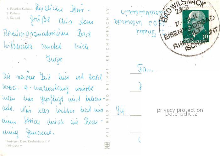 72616332 alte Postkarte Bad Wilsnack Puschkin Kurhaus Rathaus Kurpark postalisch gelaufen Erhaltung siehe scans [FriedD77] KatCode: 11110012070008