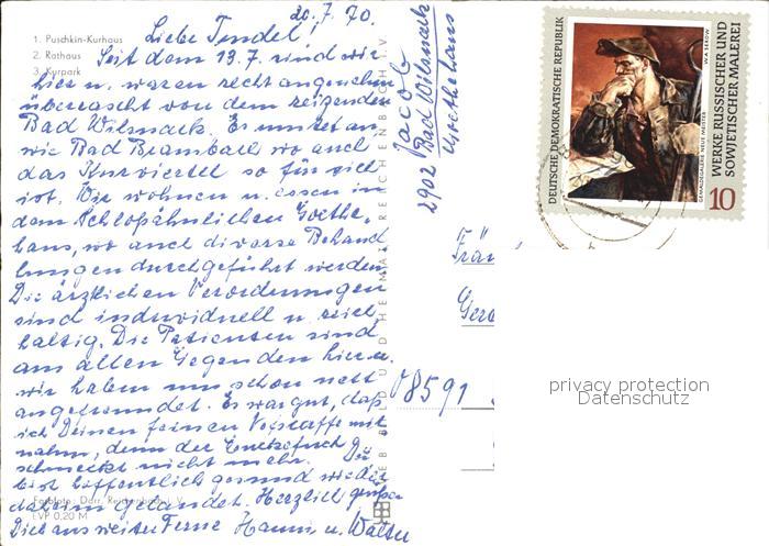 72497268 alte Postkarte Bad Wilsnack Puschkin Kurhaus Rathaus Kurpark postalisch gelaufen Erhaltung siehe scans KatCode: 11110012070008