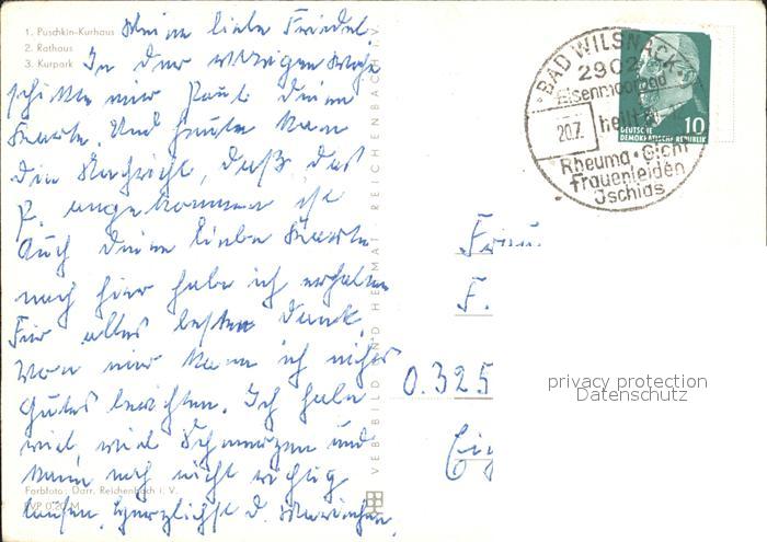 72247126 alte Postkarte Bad Wilsnack Puschkin Kurhaus Rathaus Kurpark postalisch gelaufen Erhaltung siehe scans KatCode: 11110012070008