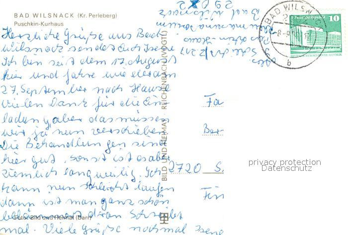 73739405 alte Postkarte Bad Wilsnack Puschkin Kurhaus postalisch gelaufen Erhaltung siehe scans [FriedD77] KatCode: 11110012070008