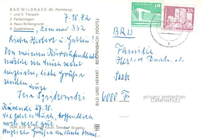 73140327 alte Postkarte Bad Wilsnack Tierpark Park Haus Birkengrund Goethehaus postalisch gelaufen Erhaltung siehe scans [FriedD77] KatCode: 11110012070008