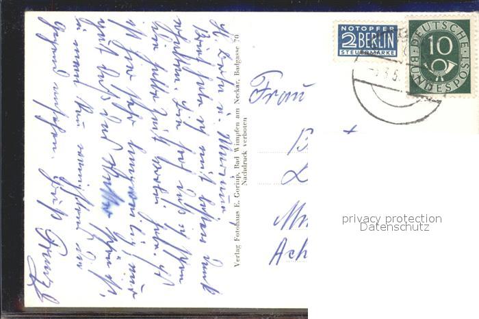 72143020 alte Postkarte Bad Wimpfen Am Berg Im Tal Kurmittelhaus Hohenstaufen Kaiserpfalz mit Bauer Turm Jugendherberge postalisch gelaufen Erhaltung siehe scans KatCode: 11110008125007
