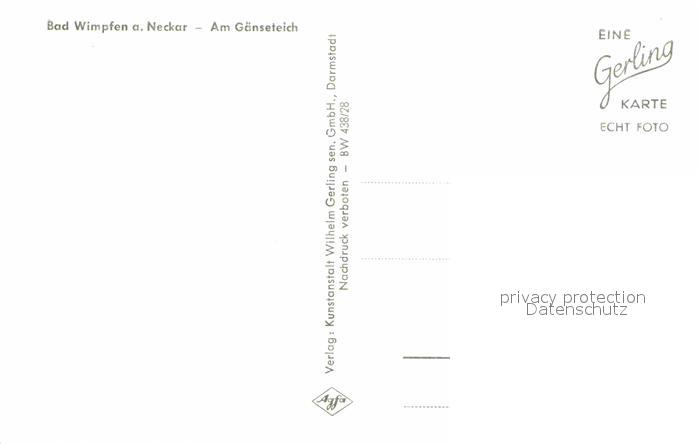 72795409 Bad Wimpfen Am Gaenseteich postalisch nicht gelaufen Erhaltung siehe scans [LiesaD40] KatCode: 11110008125007