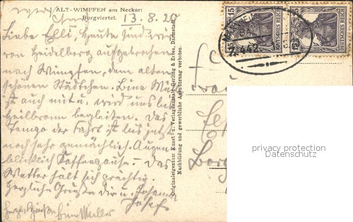 Bad Wimpfen Burgviertel Alt-Wimpfen Zeichnung Bahnpost