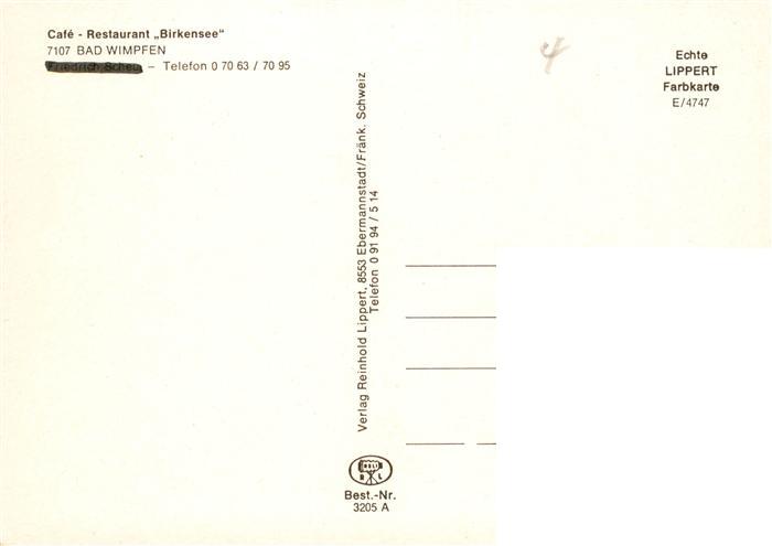73896941 Bad Wimpfen Cafe Restaurant Birkensee Gastraeume postalisch nicht gelaufen Erhaltung siehe scans [FriedD77] KatCode: 11110008125007