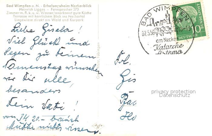 73283261 alte Postkarte Bad Wimpfen Erholungsheim Neckarblick postalisch gelaufen Erhaltung siehe scans [NatalD47] KatCode: 11110008125007