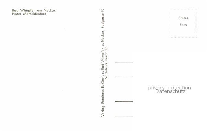 72767931 Bad Wimpfen Hotel Mathhildenbad postalisch nicht gelaufen Erhaltung siehe scans [AndreD76] KatCode: 11110008125007