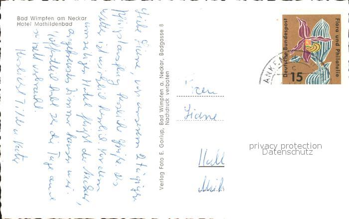 72518591 alte Postkarte Bad Wimpfen Hotel Mathildenbad postalisch gelaufen Erhaltung siehe scans KatCode: 11110008125007