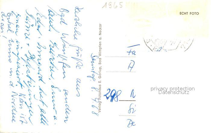 73292720 alte Postkarte Bad Wimpfen Kaiserpfalz Blauer Turm Steinhaus Dominik Kloster Kreuzgang Adlerbrunnen Klostergasse postalisch gelaufen Erhaltung siehe scans [WerneD78] KatCode: 11110008125007