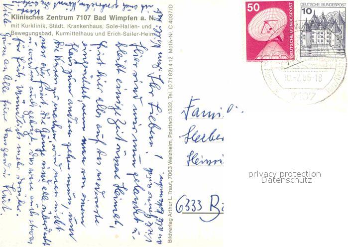 72915981 alte Postkarte Bad Wimpfen Klinisches Zentrum postalisch gelaufen Erhaltung siehe scans [LiesaD40] KatCode: 11110008125007