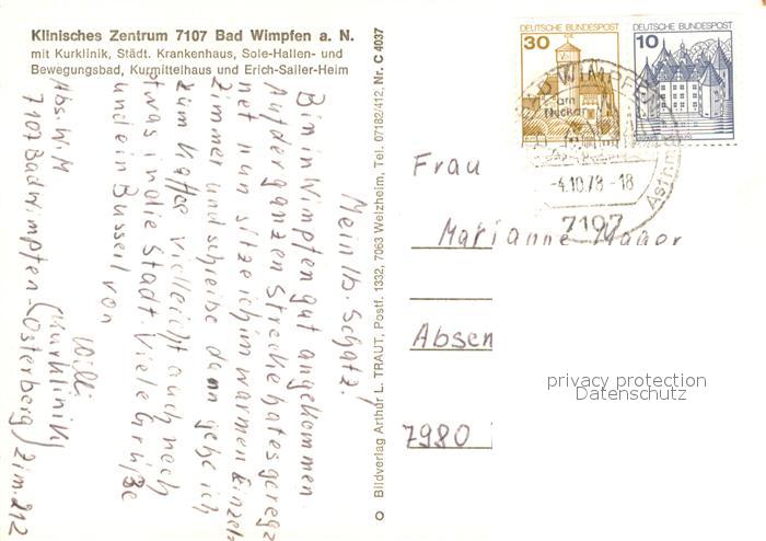 73313690 alte Postkarte Bad Wimpfen Klinisches Zentrum postalisch gelaufen Erhaltung siehe scans [LiesaD40] KatCode: 11110008125007