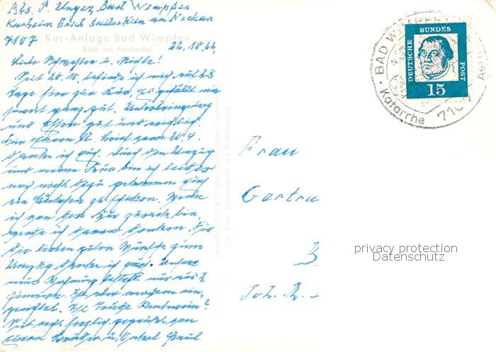 73836283 alte Postkarte Bad Wimpfen Kur Anlagen Fliegeraufnahme postalisch gelaufen Erhaltung siehe scans [WerneD78] KatCode: 11110008125007