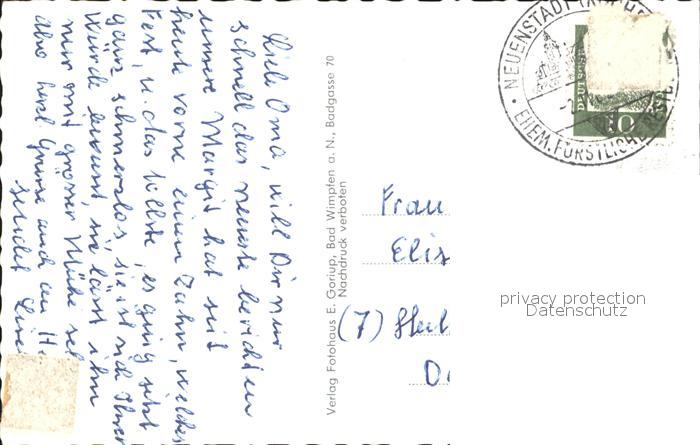 72208696 alte Postkarte Bad Wimpfen Kurmittelhaus Erich Sailer Heim Raum Inhalation Liegehalle postalisch gelaufen Erhaltung siehe scans KatCode: 11110008125007