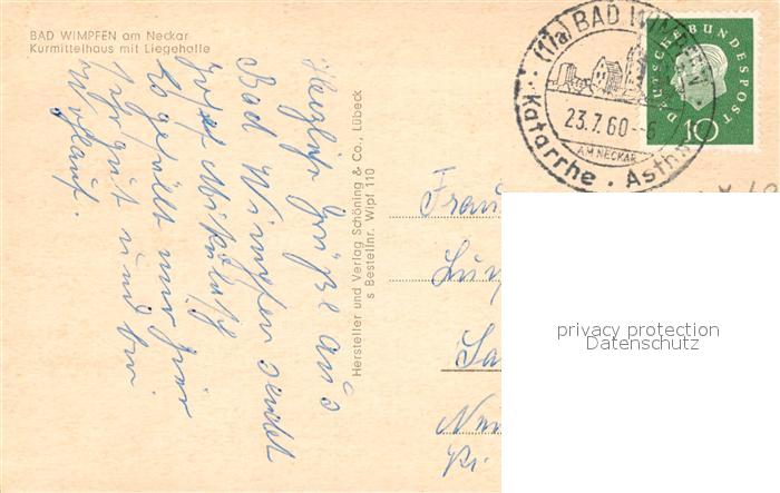 73146661 alte Postkarte Bad Wimpfen Kurmittelhaus mit Liegehalle postalisch gelaufen Erhaltung siehe scans [FriedD77] KatCode: 11110008125007