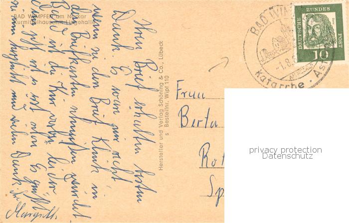 73770168 alte Postkarte Bad Wimpfen Kurmittelhaus mit Liegehalle postalisch gelaufen Erhaltung siehe scans [WerneD78] KatCode: 11110008125007