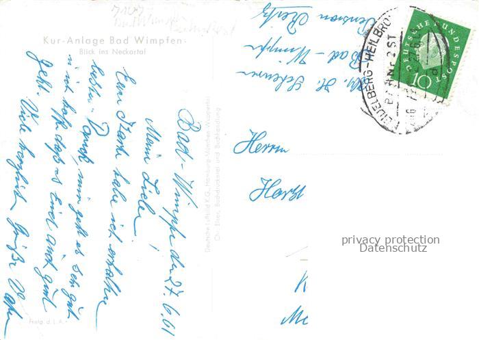 74051192 alte Postkarte Bad Wimpfen Neckar Panorama Blick ins Neckartal Kuranlage Fliegeraufnahme postalisch gelaufen Bahnpost Erhaltung siehe scans [FriedD77] KatCode: 11110008125007