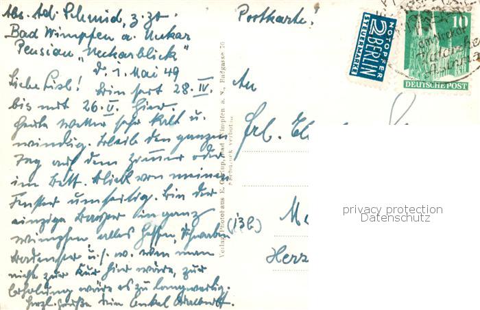 73804261 alte Postkarte Bad Wimpfen Neckarpartien Nuernberger Tuermchen Kurmittelhaus Hohenstaufentor postalisch gelaufen Erhaltung siehe scans [WerneD78] KatCode: 11110008125007